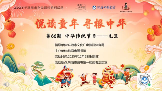 4.累积报名未参加3次将会限制您的报名请求,如行程有变,请在珠海市图书馆微信订阅号选择“其他服务”—“退订活动”,活动开始前3小时不接受“退订”。