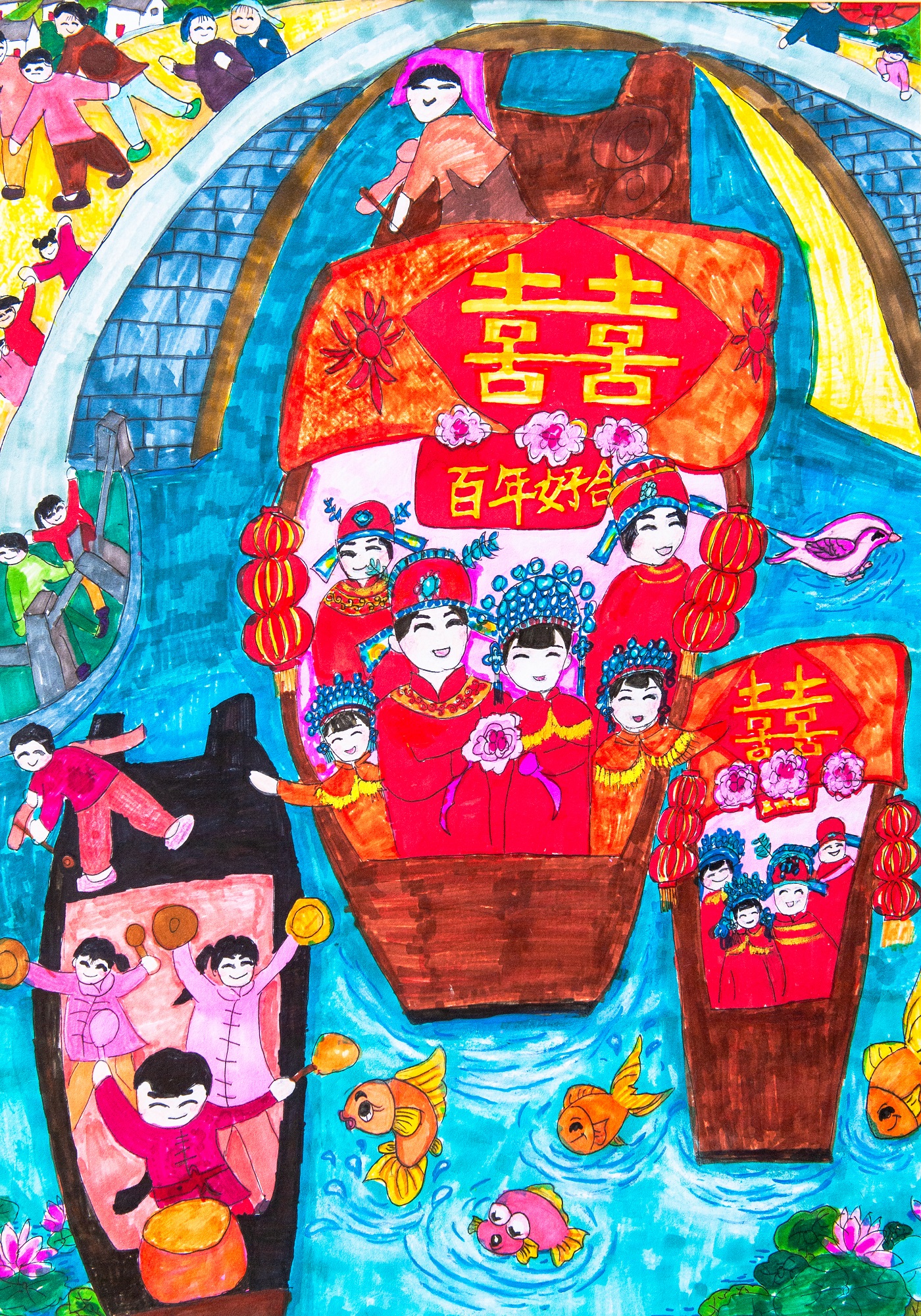 《水上婚嫁》(中学组银奖)作者:罗迪克 辅导老师:单醇丽 学校:珠海市青少年妇女儿童活动中心