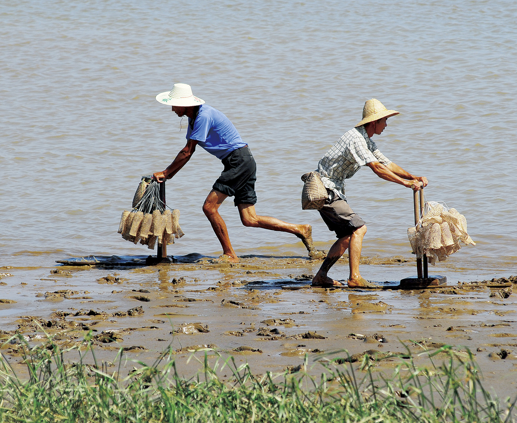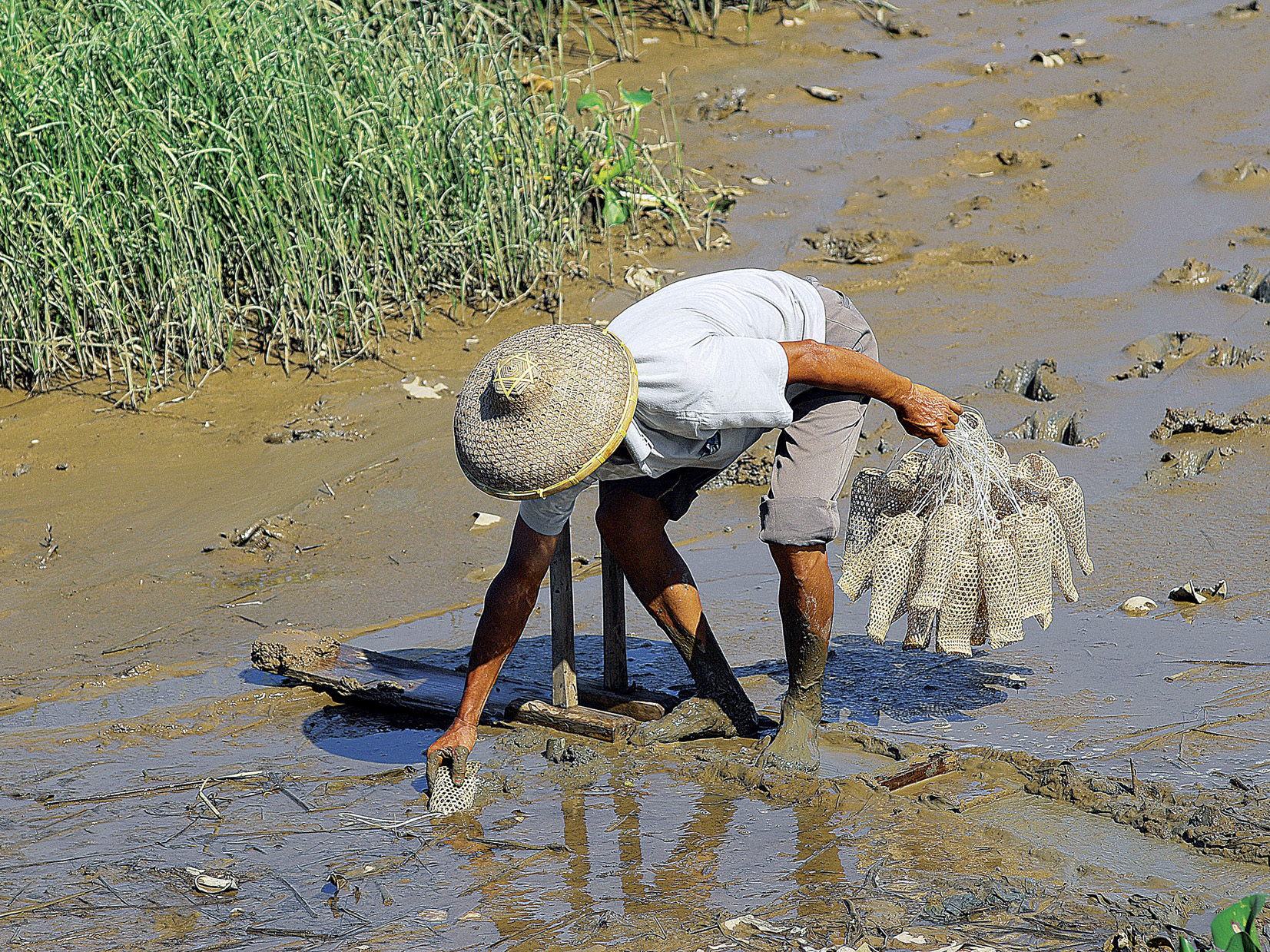 编织泥鱼笼,用小刀将篾片两面轻轻地刨开两个来回,增加篾片的光滑度