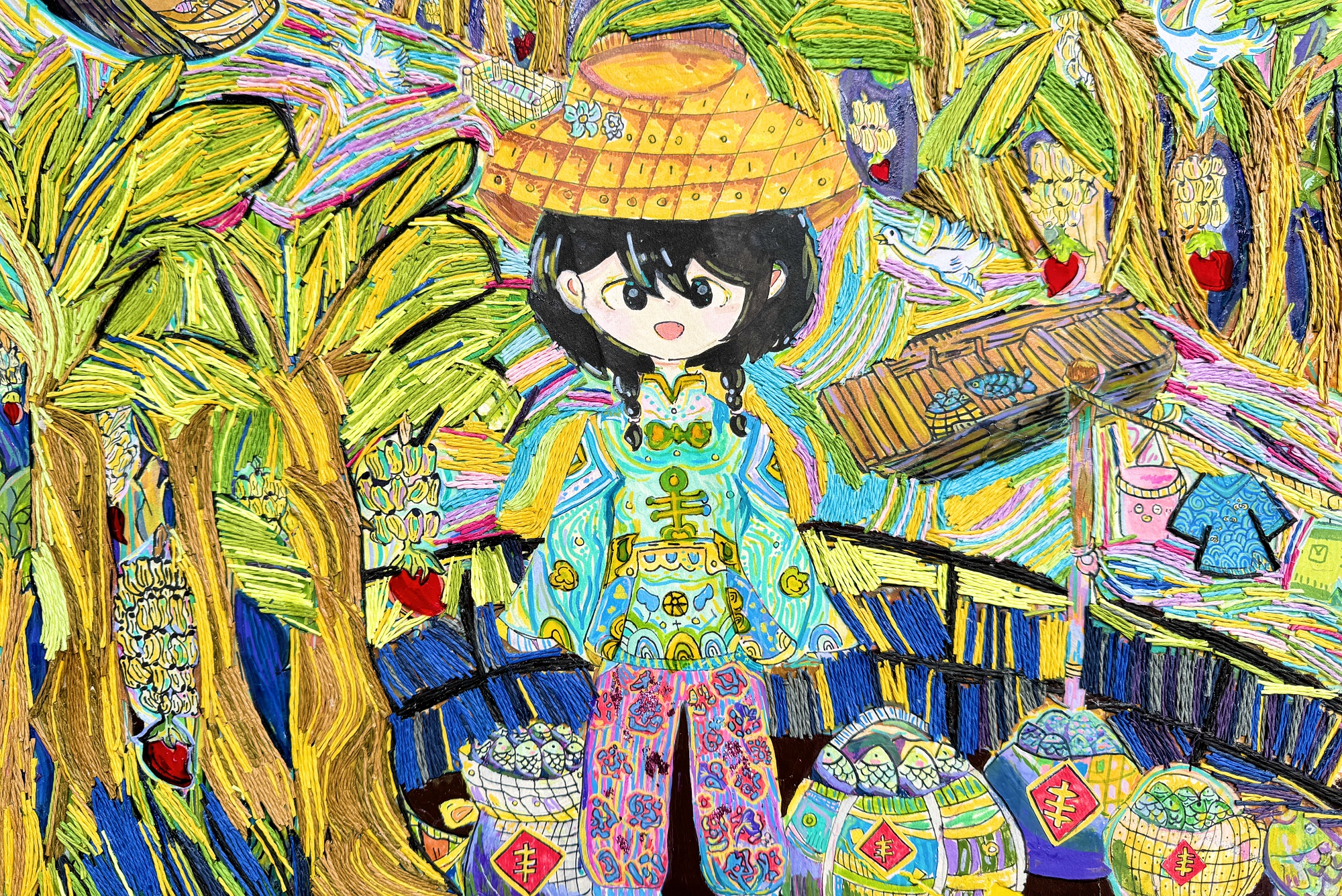 《疍家少女》(小学组金奖)作者:江诗雅 辅导老师:杜 斌 学校:珠海市香洲区广生小学