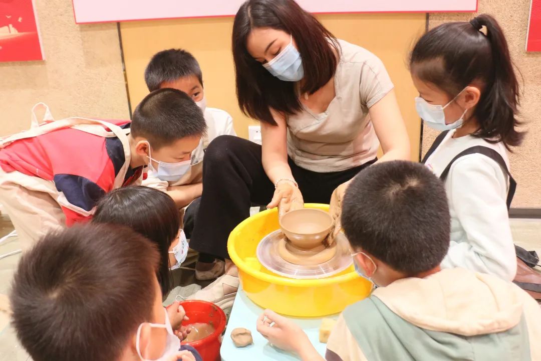 陶土的灵性与魅力是无垠的,回到彩陶世界,回到孩童世界,回到泥土大地是每个人的向往。这一边,关于艺术之美的原始陶器讲座让人受益匪浅,而在另一旁的多功能活动室,那些陶土正在孩子们的手中生花。你听!在老师的讲解下,原始陶器的百般样式,逐渐在孩子们的心中清晰了。你瞧!在老师的指导下,孩子们正专心致志用拉胚机做着陶器......