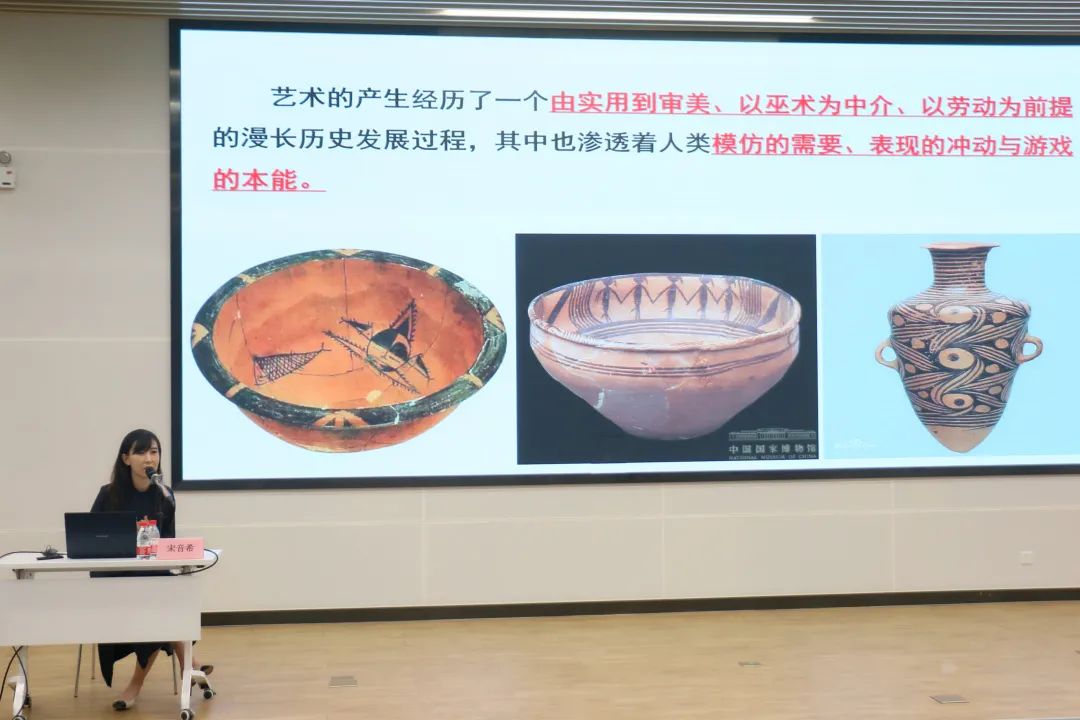 “艺术的起源,就在文化起源的地方。”现场,宋教授结合格罗塞的名言,简洁明了地概括了由陶器的艺术之美背后所蕴含的文化内核。从史前人类的作品回归到本土文化,中华传统文化的精神内核值得我们深思。