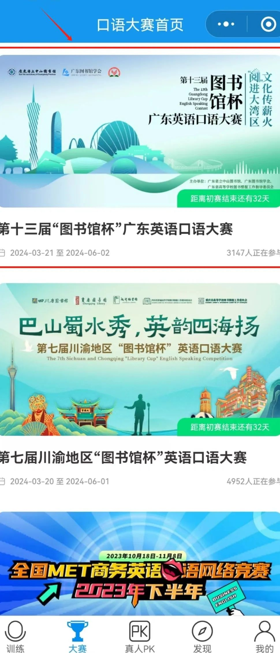 点击“大赛”,选择第十三届“图书馆杯”广东英语口语大赛—我要报名—报名选项中请选择 “珠海市金湾区图书馆”,并填写好其他资料提交即报名成功。