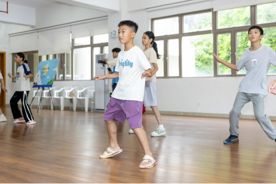 街舞体验课中,孩子们跟随老师学习街舞基础动作,在音乐里舒展肢体,用跳跃的动作把暑期的最后一股热乎劲儿转化成青春张扬的舞步,哪怕只是记住了一个酷酷的手势,也是这个暑假留给他们的“活力纪念章”。