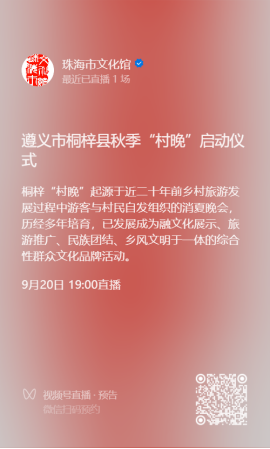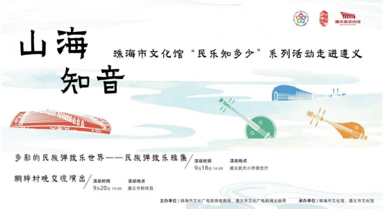 9月中旬,珠海市文化馆“民乐知多少”系列活动走进遵义,为当地群众奉上《多彩的民族弹拨乐世界》民族弹拨乐雅集等系列精彩活动,还将亮相全国知名的桐梓“村晚”,促进两地文化交流合作,推动优质文化艺术资源以志愿、公益的形式向西部地区流动,助力珠遵协作再结硕果、两地情谊再续佳话。