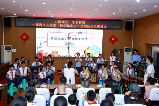 在遵义航天小学举办的《多彩的民族弹拨乐世界》民族弹拨乐雅集中,来自珠海市文化馆文化志愿者服务队的金石弹拨乐团拿出看家本领,展开了一次乐器大比拼,通过生动形象的语言和演绎,针对民族弹拨乐器的历史、音高、形制、技巧、特色等方面进行了讲解,带领同学们走进多彩的民族弹拨乐世界。不同于传统演出,这场雅集更像一场“民乐公开课”,5位演奏家化身“乐器向导”,手持乐器逐一拆解魅力,同时带来了《天秤座》《Summer》等耳熟能详、广受欢迎的弹拨乐作品。