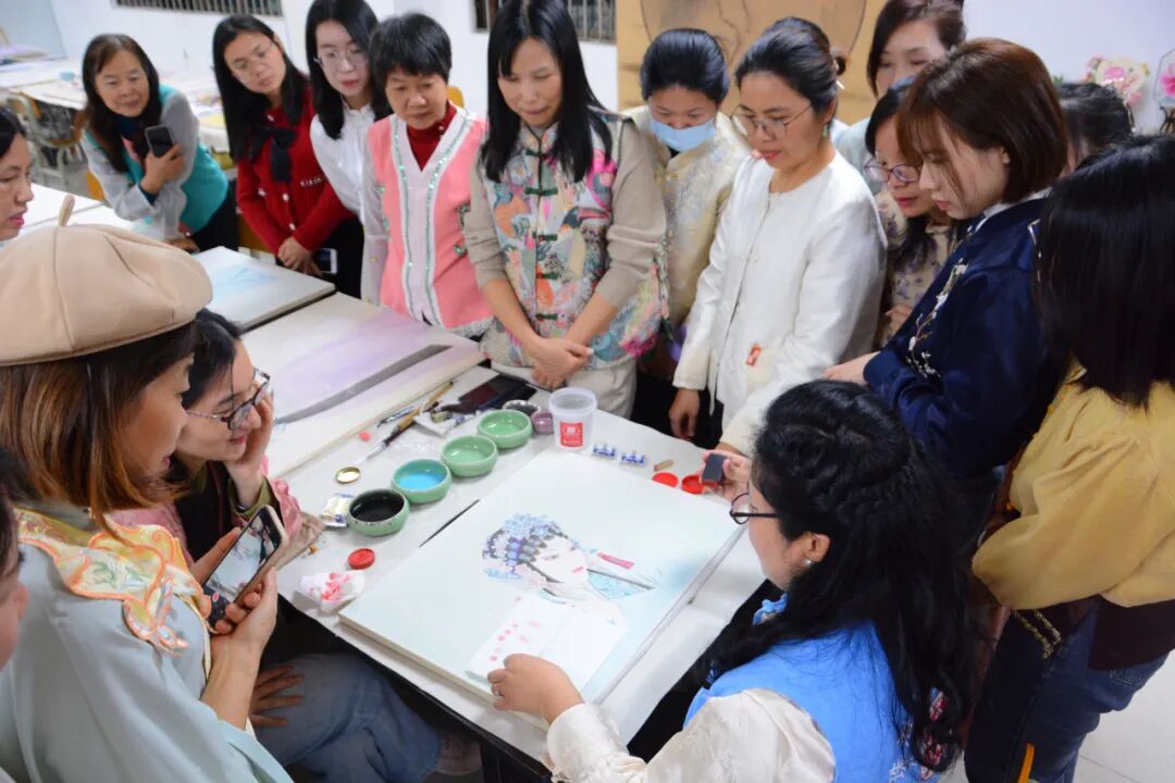 此次秋季公益培训班,李敏老师将斗门非遗——粤曲和中国艺术瑰宝——工笔画相结合,专注于教授粤曲工笔人物画的技巧与方法。