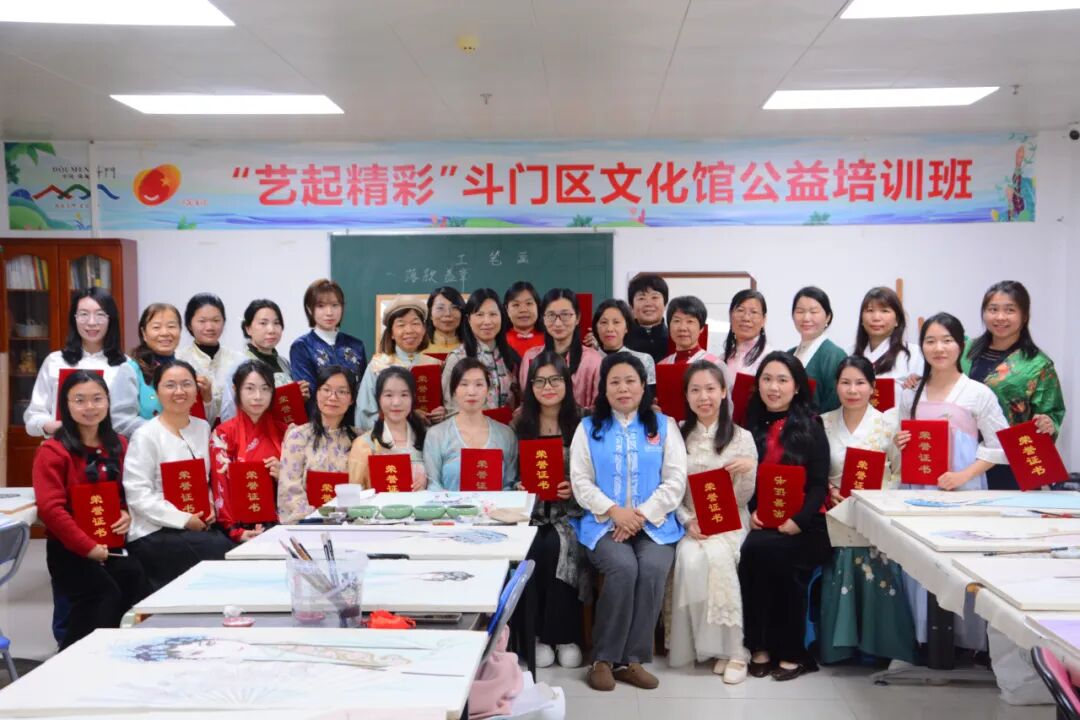 其中,斗门区文化馆“成人工笔画班”课程于2025年1月20日圆满结课。