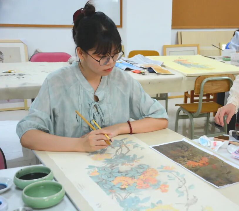 本期工笔画培训班由李敏老师进行授课,课程历时15周,每周1次课。 学员均为斗门区各幼儿园及中小学校的教师,课程紧扣教师群体的专业发展需求,旨在通过系统、高效的培训,帮助一线教育工作者在相对集中的时间内,深入掌握工笔画的精髓与核心技法,提升其专业素养和教学能力。 课堂上,李老师亲自示范,一笔一划均是对艺术的精雕细琢,学生们全神贯注,生怕错过任何一个步骤。 在李老师的悉心辅导下,学员们沉心静气,从花鸟的灵动姿态到人物神韵的捕捉,在这个过程中,逐步掌握工笔画的勾线方法与上色技巧,培养了自身的审美情趣和艺术修养。 短短一期课,学员们便创作出了一批精美的工笔画作品。作品题材丰富多样,既有生机盎然、寓意吉祥的花鸟画,也有刻画细腻、形神兼备的人物画,充分展现了学习的丰硕成果。学员们纷纷表示获益匪浅,对此次课程给予了高度评价。 课程尾声,李老师为每位学员分发了结课证书以作鼓励,随后,师生们合影留念,记录下这段难忘的工笔画之旅。 部分作品欣赏 近年来,斗门区以建设更高水平文明城市为目标,大力推行公益性艺术培训,精准对接市民需求。此次专为教师开设的工笔画班,正是“精准供给”的体现。它不仅为教师搭建了学习平台,提升了其专业素养,更通过赋能教师,将艺术养分带回校园、播撒课堂,惠及广大学生,实现美育“二次辐射”,为提升全区文化素养注入了持久动力。