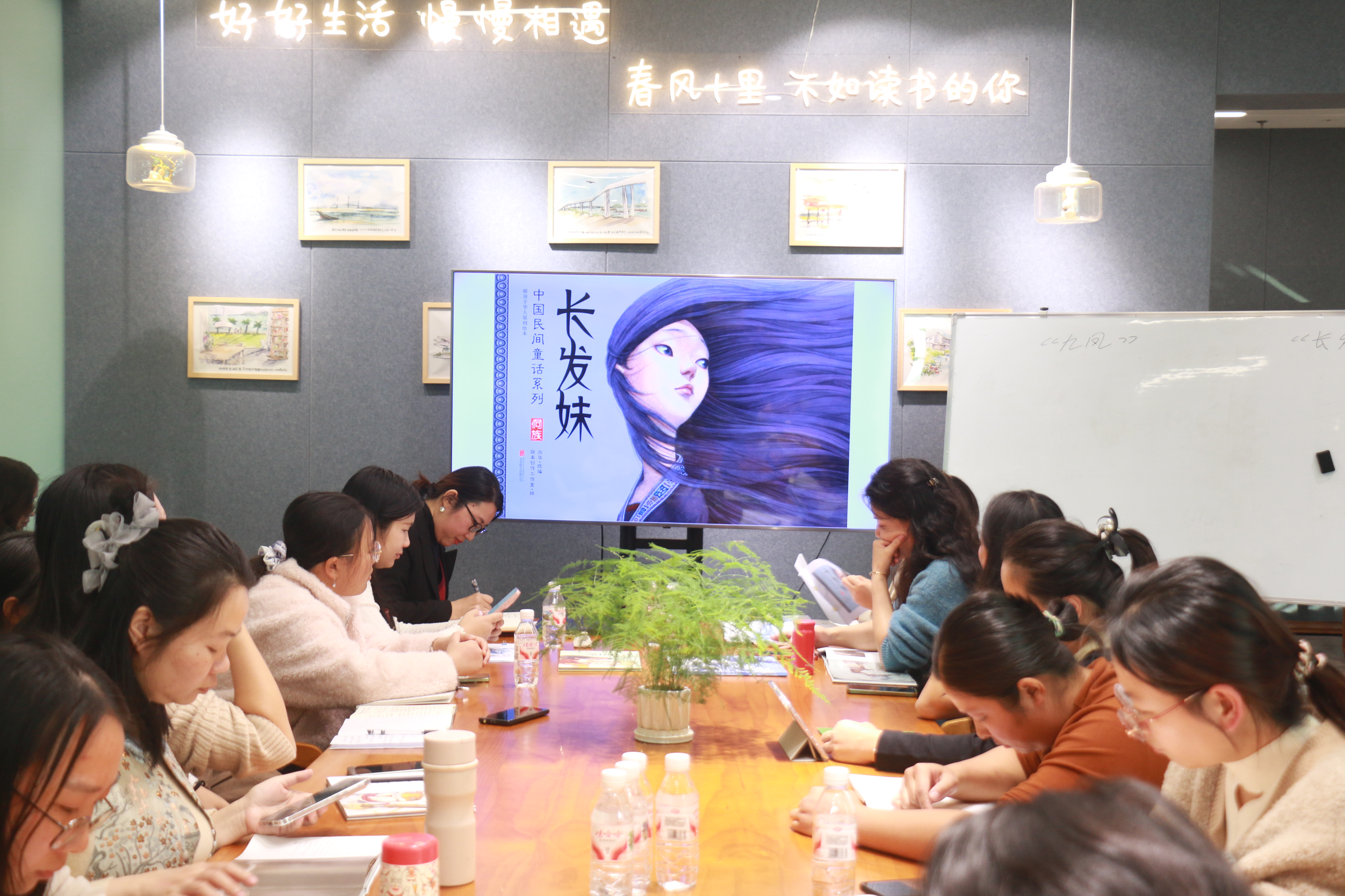 研读分享会落幕时,夕阳余晖洒在摊开的绘本上,靛蓝与翠绿交织,古老与童真共存。这场没有标准答案的对话,却让每位参与者心中多了一份笃定:当我们真正读懂一个故事,便有能力点亮另一颗心。