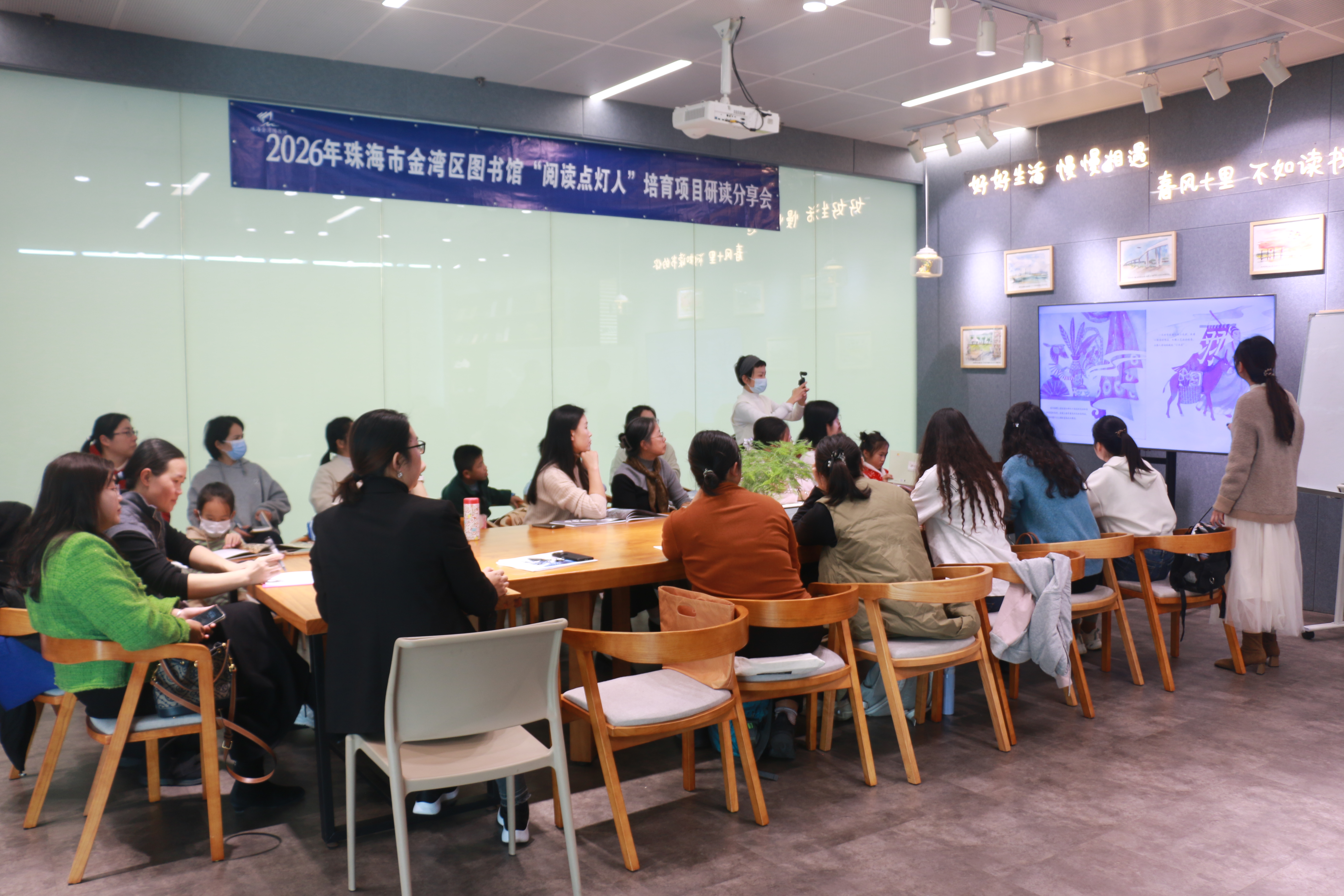 昨天下午,金图的三楼小林漫画阅读艺术空间暖意融融。窗外冬阳微斜,窗内二十多位“阅读点灯人”围坐一圈,书页翻动、思想激荡——一场以绘本《九凤》与《长发妹》为双主线的金湾区图书馆第四十八期“绘本研读分享会”,正悄然展开。